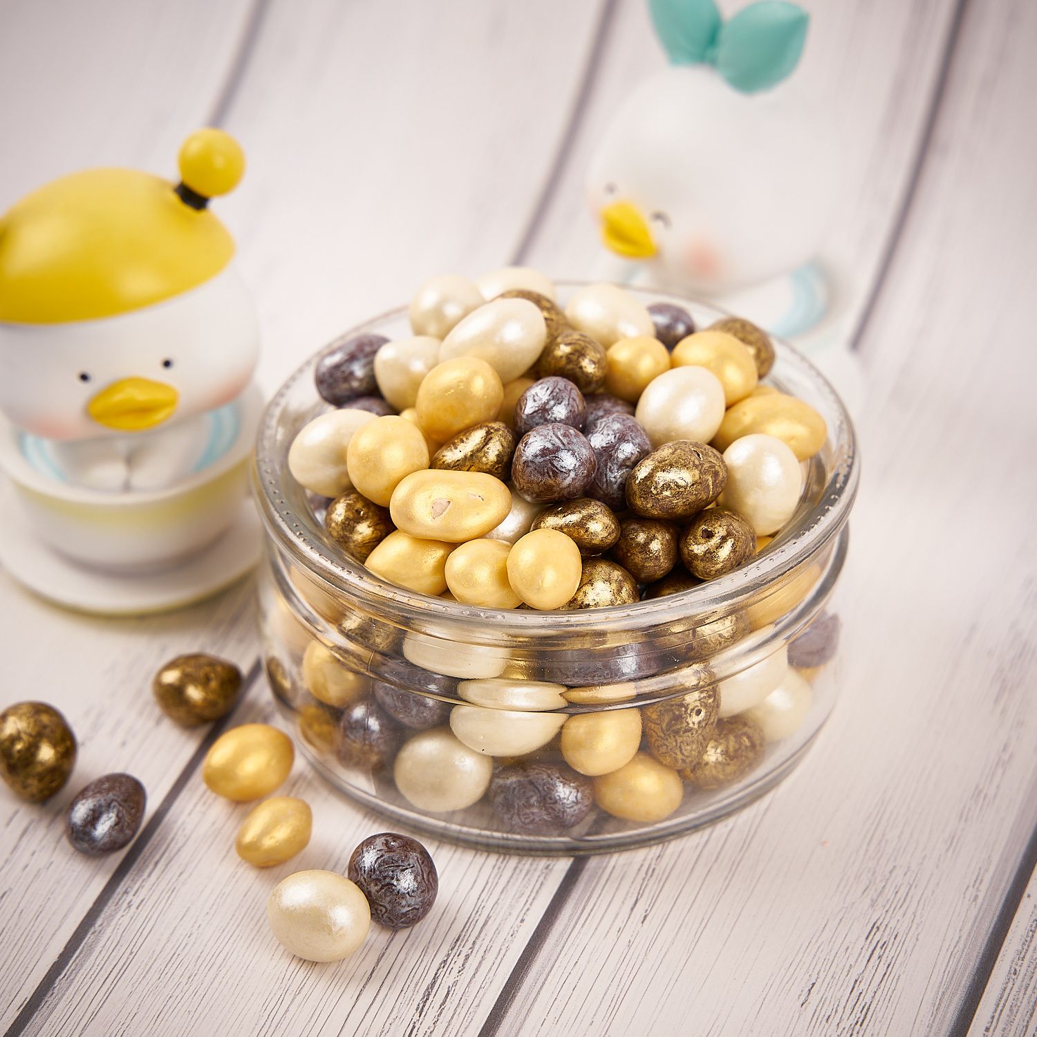 Состав: ядро арахиса жаренного, темная кондитерская глазурь(сахар, эквивалент масло какао, витамин Е, какао-порошок, эмульгаторы, ароматизатор Ванилин), белая кондитерская глазурь(сахар, эквивалент масло какао, витамин Е), сухая молочная сыворотка, эмульгаторы(соевый лецитин, Е476), глянец пищевой, пищевые красители.